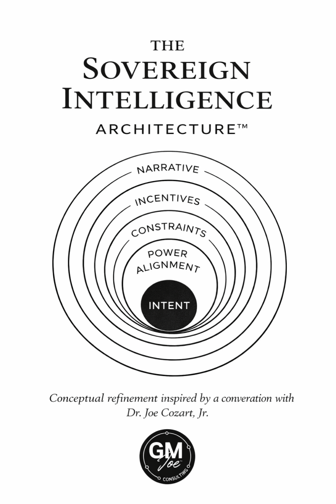 Joe Cozart is the founder of GMJoe™ Consulting, where his brand anchor—Clarity. Strategy. Sovereignty.—guides his work across energy systems, aerospace ecosystems, defense-adjacent infrastructure, and strategic communication. His work is grounded in the Sovereign Intelligence Architecture™, a layered analytical framework designed to transform ambiguity into disciplined, actionable clarity.