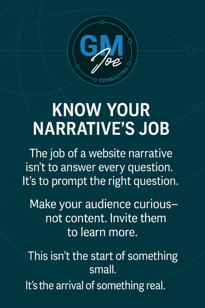 The purpose of website narrative is not to explain everything—it’s to convey enough of the right things, in the right order, to make someone want to learn more.